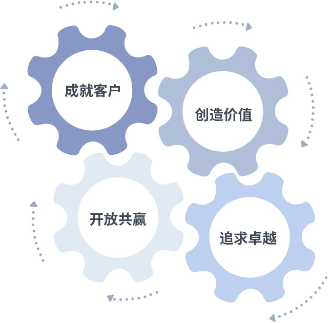 成就客户是一切决策的出发点,创造价值是衡量所有工作的标准,追求卓越是九游会j9做事做人的态度,开放共赢是九游会j9的格局也是最终的结果。价值观的齿轮环环相扣,推动着组织里的每个人不断向前。